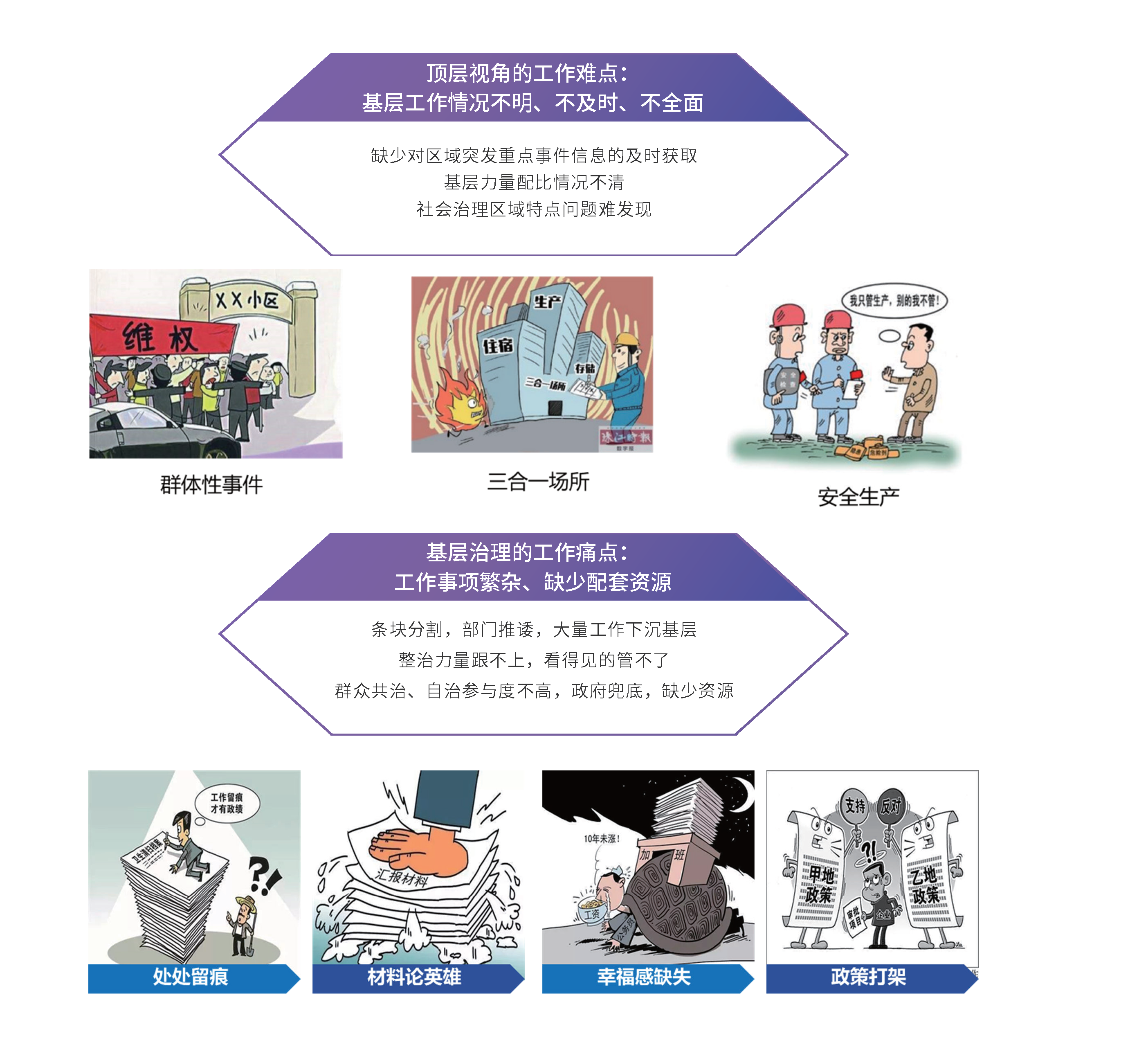 近年来,无论是国家层面的年度政府工作报告、十四五规划,或是各省市的十四五规划,均将基层社会治理作为工作方向,进一步创新市域社会治理工作内容,完善基层服务与治理能力,逐步形成“顶层-基层”的社会治理业务循环,做实社会治理工作,提升民众的幸福感与城市治理效率。